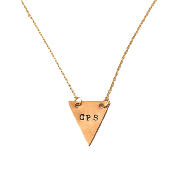 This cute triangular pendant can be customized with anything you'd like (up to 6 letters). Perfect for yourself or as a gift!