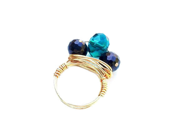 This ring is made of crystal beads in a beautiful shade of emerald green and sparkling black. We use a non-tarnish German Style wire in 24 gauge.